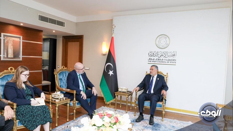 بحث رئيس مجلس الدولة محمد تكالة، مع سفير المملكة المتحدة لدى ليبيا مارتن لونغدن، الأربعاء، في مقر المجلس بالعاصمة طرابلس، تطورات العملية السياسية في ليبيا.