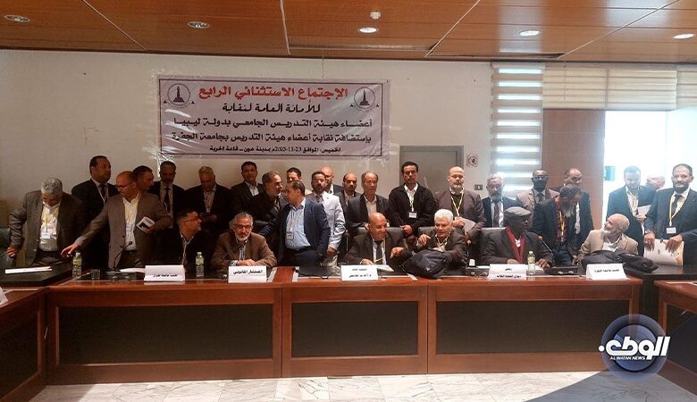 انتهى الاجتماع التشاوري للأمانة العامة لنقابة أعضاء هيئة التدريس الجامعي بجامعة الجفرة ، واستنكر الجميع الإجراءات الأمنية المتخذة ضد النقيب العام وأعضاء هيئة التدريس وما اتخذ ضد نقيب جامعة طرابلس أسامة الأزرق.