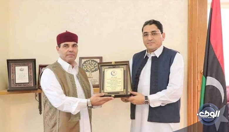 كرم وزير العمل والتأهيل بالحكومة الليبية عبدالله أرحومة مساعد الملحق العسكري العقيد عبدالقادر قزة، ومندوب العلاقات العامة بالملحقية العسكرية الليبية التابعة للقيادة العامة للقوات المسلحة العربية الليبية رضوان أبوريمة، وذلك لدورهم الفاعل في إنجاح زيارته للمملكة الأردنية الهاشمية في إطار البحث عن تخصصات جديدة للباحثين عن العمل بما يخدم سوق العمل الليبي، وذلك بمنحهم دروعاً تقديراً لهم لِما قدموه للوفد من تسهيلات لإنجاح هذه الزيارة .