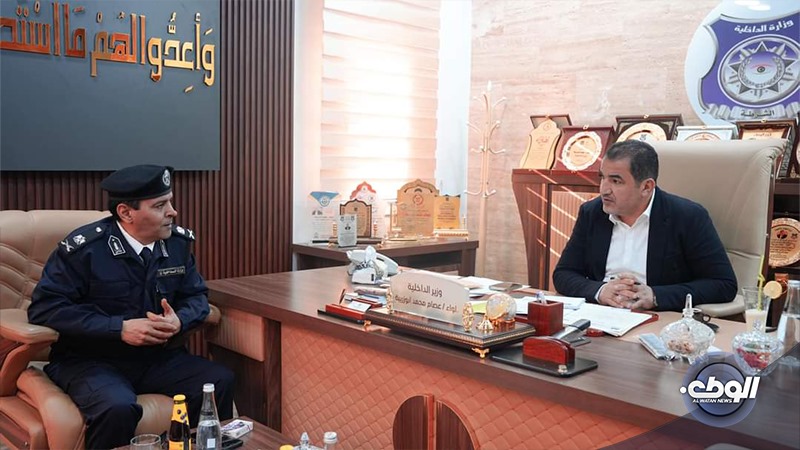 بحث وزير الدَّاخلية في الحكومة الليبية، اللواء “عصام أبوزريبة” مع مُدير مُديريِّة أمن رأس لانُوف، اللواء “أبوبكر خليفة المغربي” الجهود الأمنية والمهام التي تقوم بها المُديريِّة في الحفاظ على أمن المُواطنين ومكافحة الجريمة في المنطقة.