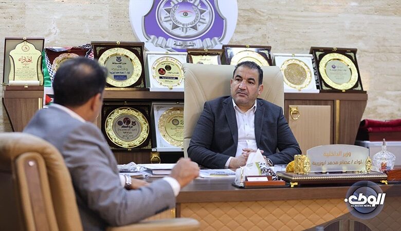 اجتمع وزير الداخلية بالحكومة الليبية، اللواء “عصام أبوزريبة”، مع مدير أمن منفذ مطار بنينا الدولي، اللواء “سعد العكوكي” لمناقشة سير عمل المديرية والتواصل مع الأجهزة الأمنية الأخرى في المطار.