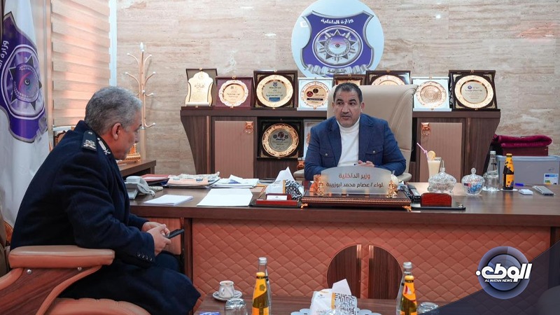 بحث وزير الداخلية في الحكومة الليبية عصام أبوزريبة، في مكتبه بديوان الوزارة في بنغازي، مع رئيس جهاز مكافحة الهجرة غير الشرعية بالمنطقة الشرقية نوري الساعدي، آليات وإجراءات مكافحة الظاهرة وتعزيز قدرات الجهاز.