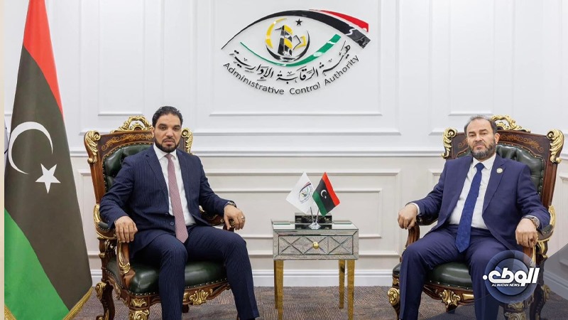 بحث النائب الثاني لرئيس مجلس الدولة عمر العبيدي، مع رئيس هيئة الرقابة الإدارية عبدالله قادربوه، اليوم الأربعاء، بمقر الهيئة بطرابلس، تقييم ودعم ورفع وتيرة العمل الرقابي الإداري والوقوف على أهم التحديات والصعوبات التي تواجهه.