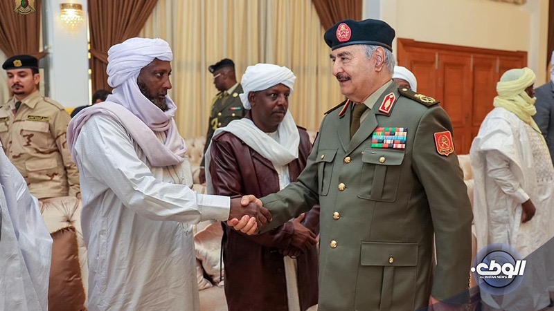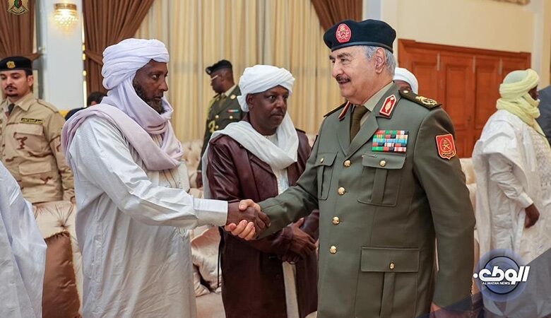 استقبل القائد العام للقوات المُسلحة الليبية المشير أركان حرب “خليفة أبوالقاسم حفتر” في مكتبه بمقرّ القيادة العامة وفد مشائخ وأعيان وحكماء قبائل التبو.