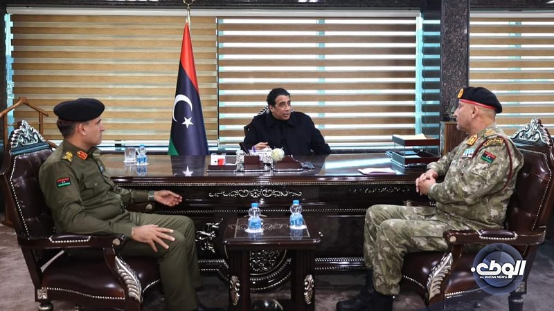 التقى القائد الأعلى للجيش الليبي، محمد المنفي، برئيس أركان الجيش لبحث الوضع الأمني في نقاط الحدود الليبية.
