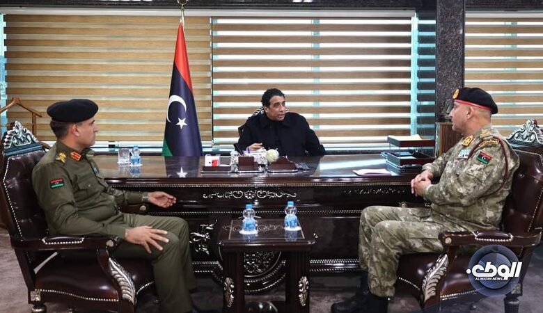 التقى القائد الأعلى للجيش الليبي، محمد المنفي، برئيس أركان الجيش لبحث الوضع الأمني في نقاط الحدود الليبية.
