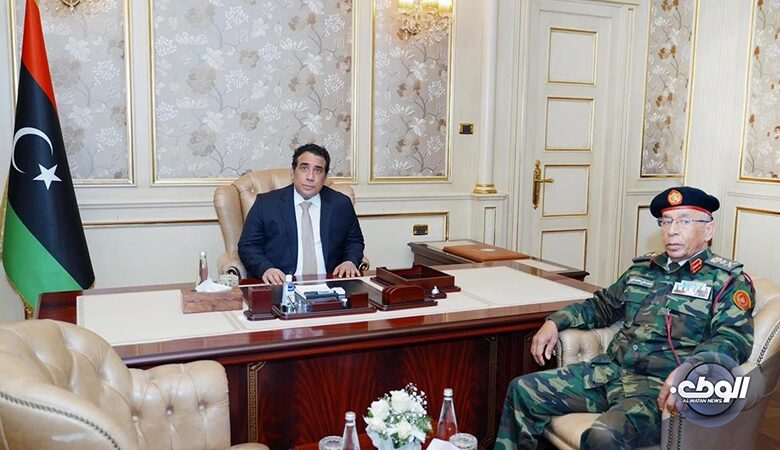 التقى رئيس المجلس الرئاسي محمد المنفي، بالمفتش العسكري العام، فريق ركن محمد الشريف، حيث قدم تقريراً مفصلاً عن إدارة التفتيش.