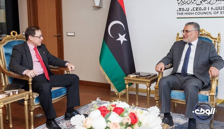 استقبل رئيس مجلس الدولة محمد تكالة، سفير جمهورية روسيا الاتحادية لدى ليبيا حيدر أغانين في مقر المجلس بالعاصمة طرابلس.