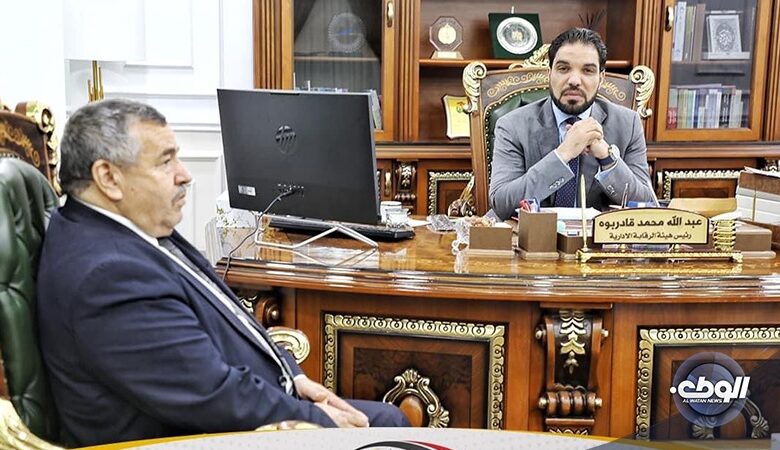 اجتمع رئيس هيئة الرقابة الإدارية عبدالله قادربوه، برئيس مصلحة الأحوال المدنية اللواء بشير عون ، لمناقشة سير العمل بالمصلحة والوقوف على المشاكل والعراقيل التي تواجهها أثناء تأدية مهامها المكلفة بها، وإيجاد الحلول الناجعة لحلحلتها لتقديم أفضل الخدمات للمواطنين.