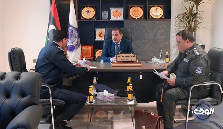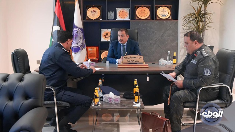 بحث وزير الداخلية بالحكومة الليبية عصام أبوزريبة، مع مدير أمن الساحل أسامة الكيش، في مكتبه بمقرّالوزارة، الأوضاع الأمنية داخل البلدية.