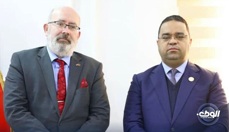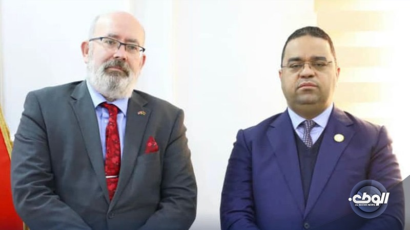 بحث وزير العمل والتأهيل في الحكومة المنتهية علي العابد مع السفير البريطاني لدى ليبيا مارتن لونغدن، تعزيز التعاون الثنائي في قطاع العمل.