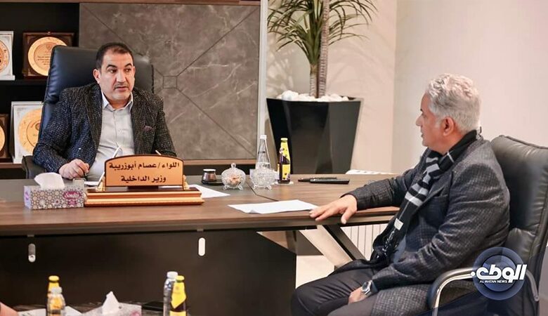عُقد اجتماع ط في ديوان وزارة الداخلية بمدينة بنغازي، حيث التقى وزير الداخلية، اللواء “عصام أبوزريبة”، بعميد كلية الدراسات العليا للعلوم الأمنية والقانونية، اللواء الدكتور “خالد الفايدي”.