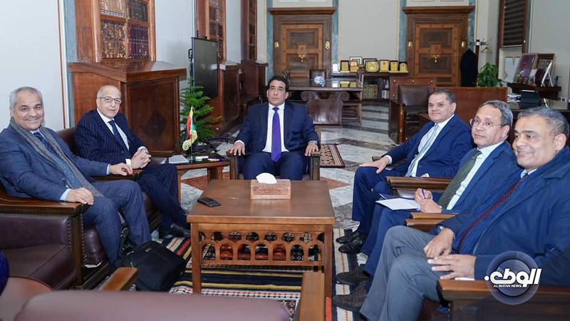 ترأس رئيس المجلس الرئاسي محمد المنفي، اجتماعاً مالياً بشأن الإنفاق العام للعام الحالي بمقر المصرف المركزي، مع رئيس الحكومة المنتهية عبد الحميد الدبيبة، ومحافظ مصرف ليبيا المركزي الصديق الكبير.