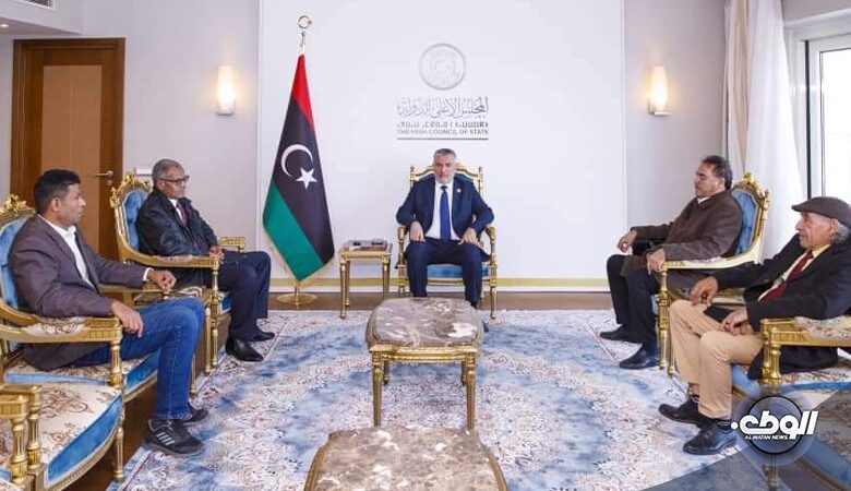 بحث رئيس مجلس الدولة محمد تكالة مع وفد من أعيان وحكماء وادي الشاطئ، القضايا التي تواجه الجنوب الليبي، حيث تركز اللقاء على بحث التحديات التي يواجهها الجنوب الليبي، ومن بينها مشكلة التهريب وتأثيره السلبي على حياة المواطنين واقتصاد المنطقة، وتم التأكيد على أهمية مواجهة هذه الصعوبات والبحث عن حلول فعّالة لتحسين ظروف الحياة في تلك المناطق.