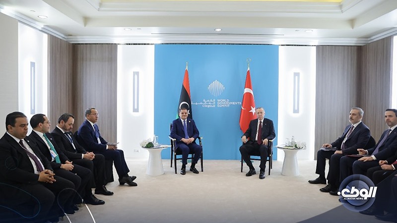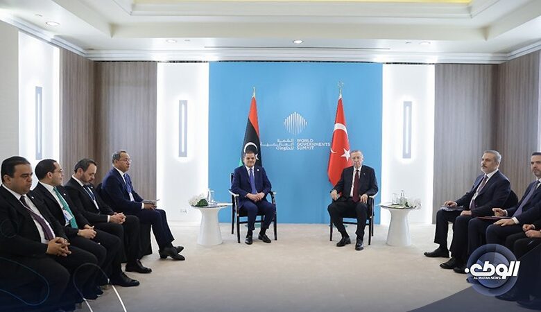 اجتمع رئيس الحكومة منتهية الولاية عبد الحميد الدبيبة مساء اليوم مع الرئيس التركي رجب طيب أردوغان، بمدينة دبي على هامش القمة العالمية للحكومات المقامة في الإمارات.
