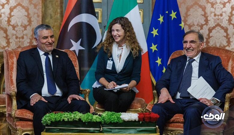 بحث رئيس مجلس الدولة محمد تكالة، والوفد المرافق له من أعضاء المجلس، مع رئيس مجلس الشيوخ الإيطالي إجنازيو لاروسو، اليوم الأربعاء، خلال زيارته الرسمية إلى إيطاليا، العلاقات الثنائية وأوجه التعاون بين البلدين.