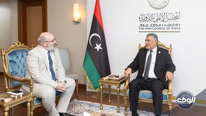 التقى رئيس مجلس الدولة محمد تكالة، بسفير المملكة المتحدة لدى ليبيا مارتن لونغدن، بمقر المجلس.