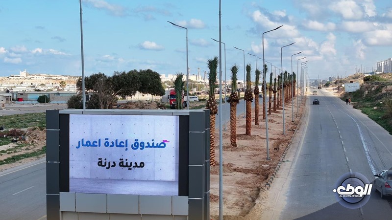 استمر صندوق إعادة إعمار درنة والمدن والمناطق المتضررة، تستمر أعمال الإنشاءات والتطوير للحدائق العامة ومداخل ومخارج مدينة درنة وتزيين الطرقات العامة في المدينة.