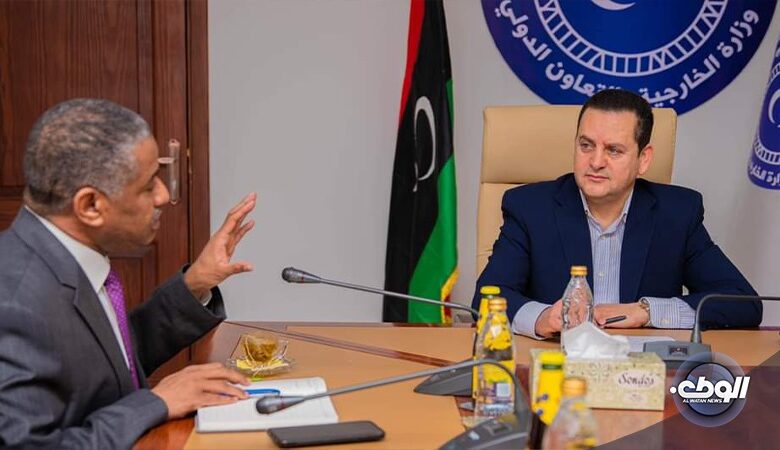 استقبل وزير الخارجية والتعاون الدولي المفوض عبدالهادي الحويج القنصل العام السوداني، عبدالرحمن محمد، الذي زار مقر الوزارة في بنغازي وأكد الوزير على أهمية استقرار السودان وحرصه على دعم جهود إنهاء الحرب فيها، مع التشديد على الارتباط الوثيق بين استقرار السودان واستقرار ليبيا.