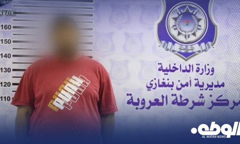 تمكّن مركز شرطة العروبة من ضبط شخص قام بالاعتداء على عدة مواطنين، من بينهم مواطن تعرض للاعتداء داخل مستشفى الطارق باستخدام سلاح أبيض من نوع  طباق، وذلك تنفيذًا لتعليمات مدير أمن بنغازي، اللواء أحمد الشامخ، بضبط المطلوبين والخارجين عن القانون.