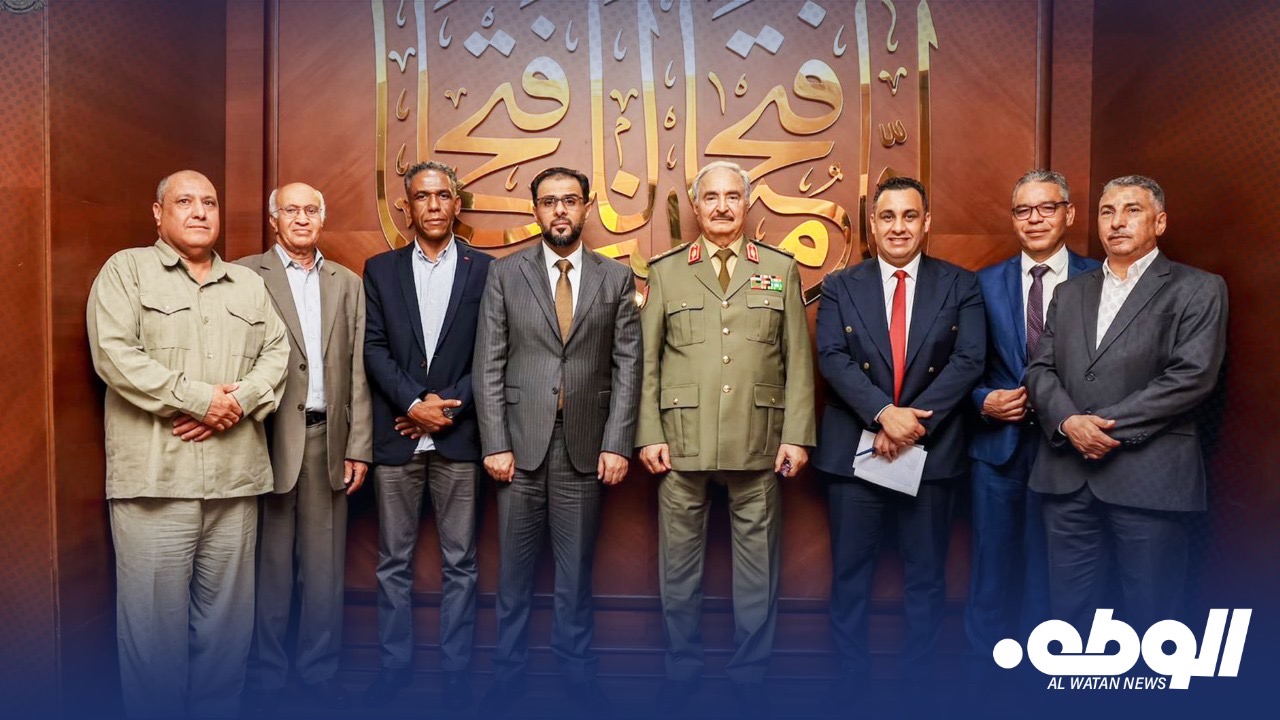 استقبل القائد العام للقوات المُسلحة العربية الليبية المشير خليفة حفتر، في مكتبه بمقرّ القيادة العامة، رئيس الحكومة الليبية أسامة حماد، ومدير عام صندوق التنمية وإعادة إعمار ليبيا المهندس بالقاسم حفتر، ووفداً ضم كلاًمن؛ وكيل وزارة الحكم المحلي أبوبكر امصادف، عميد بلدية الكفرة عبدالرحمن عقوب.