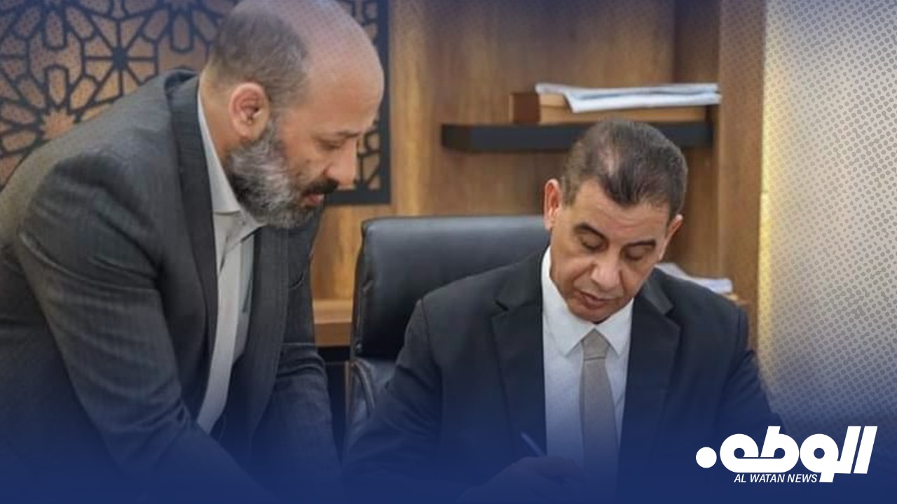 استلم نائب رئيس الحكومة الليبية علي القطراني، مجلدات الحساب الختامي عن العام 2023 للباب الأول وحسابات الباب الثاني والودائع والأمانات، من مدير مكتب الفحص والمراجعة الداخلية رئيس لجنة اعداد الحساب الختامي عاطف المنصوري.