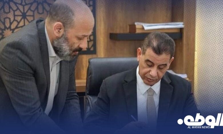 استلم نائب رئيس الحكومة الليبية علي القطراني، مجلدات الحساب الختامي عن العام 2023 للباب الأول وحسابات الباب الثاني والودائع والأمانات، من مدير مكتب الفحص والمراجعة الداخلية رئيس لجنة اعداد الحساب الختامي عاطف المنصوري.
