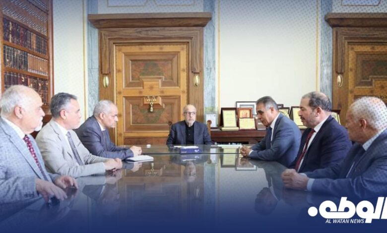 اجتمع محافظ مصرف ليبيا المركزي الصديق عمر الكبير بمكتبه مع أعضاء اللجنة الاقتصادية بمجلس الدولة بحضور مدير ادارة البحوث والإحصاء بمصرف ليبيا المركزي لمناقشة الأوضاع الاقتصادية واجراءات فرض رسم على مبيعات النقد الأجنبي بشكل مؤقت وآثار العملة المزورة من فئة 50 دينار مجهولة المصدر على الاقتصاد.