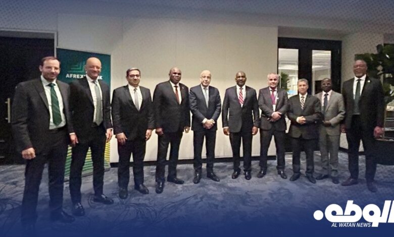 في إطار جهود مصرف ليبيا المركزي لتوسيع نطاق تعاملاته مع المؤسسات المالية الأفريقية، وضمن دوره كنائب رئيس جمعية البنوك المركزية الأفريقية (AACB)، اجتمع ، محافظ مصرف ليبيا المركزي الصديق عمر الكبير، والوفد المرافق له مع بيناديكت اوراماه، رئيس بنك الاستيراد والتصدير الأفريقي (Afreximbank)، لمناقشة أهداف وأغراض البنك، ودوره في تعزيز ودعم صادرات السلع المنتجة بين الدول الأفريقية.
