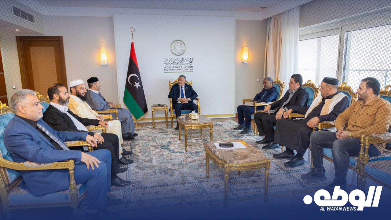 التقى رئيس مجلس الدولة محمد تكالة، رفقة عضو المجلس فتح الله السريري، مع رئيس مجلس إدارة مجمع القرآن الكريم والكاتب العام وعدد من مدراء الإدارات بالمجمع، اليوم الخميس، بمقر المجلس.