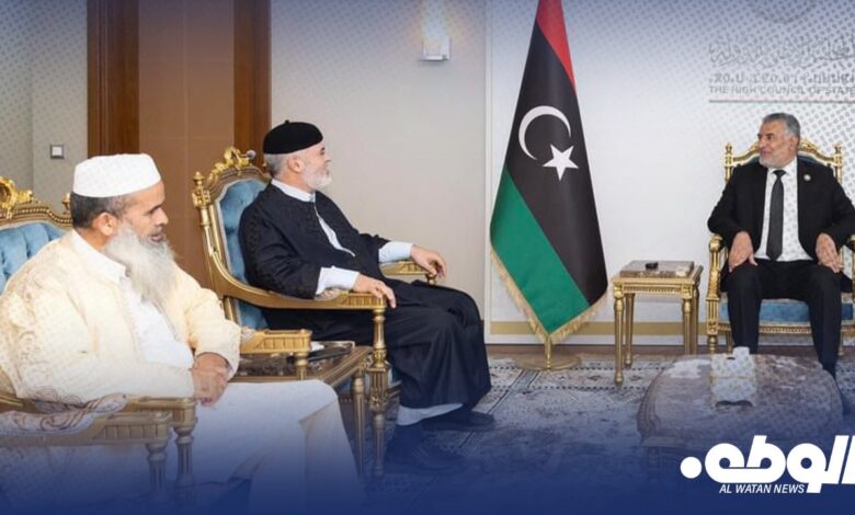 التقى رئيس مجلس الدولة محمد تكالة، بحضور عضو المجلس الدرعي سالم، كلاً من أحمد الذيب والبشتي الزحوف؛ ممثلين لأعيان وحكماء المنطقة الغربية.