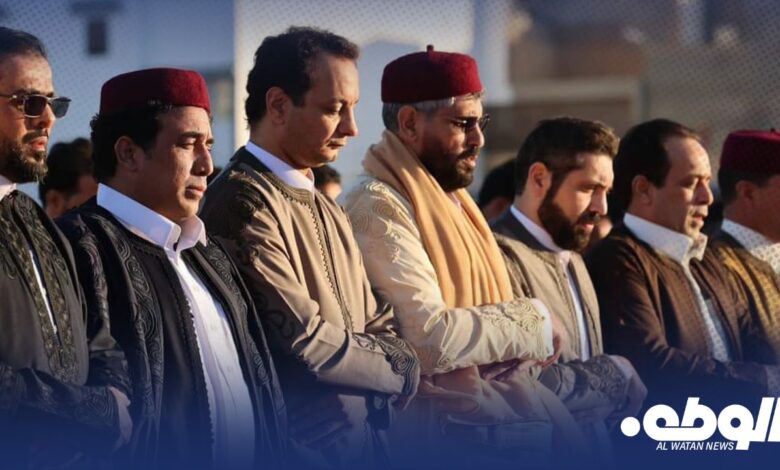 رئيس الوزراء ومدير عام صندوق التنمية وإعادة الإعمار يؤديان شعائر صلاة عيد الفطر المبارك بمدينة درنة بمشاركة المجلس الرئاسي