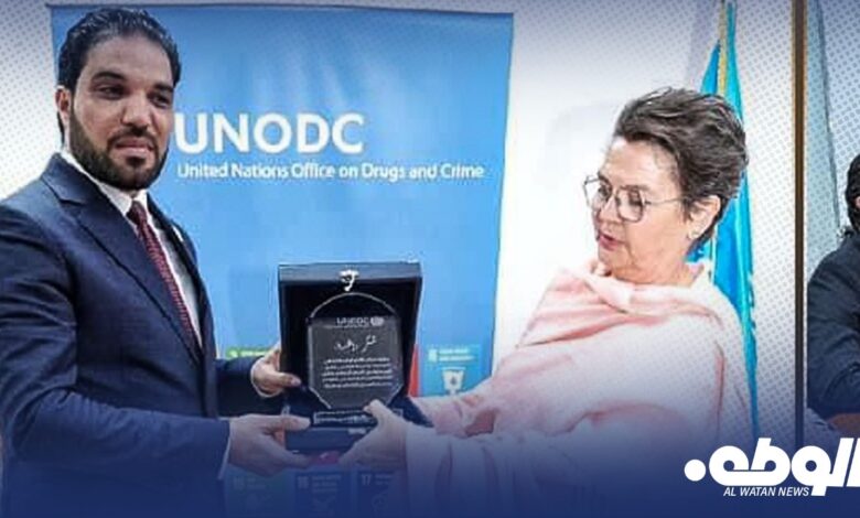 وفي ختام اللقاء، قدمت الممثلة الإقليمية لمكتب الأمم المتحدة، “كريستينا”، درعًا تكريميًا لقادربوه” رئيس هيئة الرقابة الإدارية.