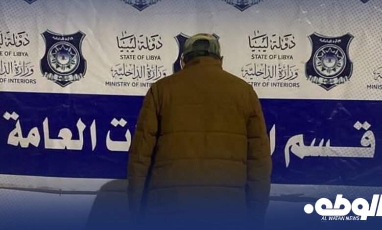 ضبط قسم التحريات العامة بمديرية أمن بنغازي، مطلوب لدى الشرطة القضائية محكوم غيابياً بالسجن لمدة ثلاثة عشر عاماً على ذمة وقائع الإتجار بالمخدرات والمُسكرات.