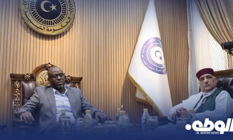 استقبل وزير الدولة لشؤون الهجرة غير الشرعيّة بلعيد الشيخي، المستشار الاجتماعي للقيادة العامة للجيش العربي الليبي بمكتبة بمقر الوزارة، لمناقشة العديد من الموضوعات المتعلقة بملف الهجرة غير القانونية.