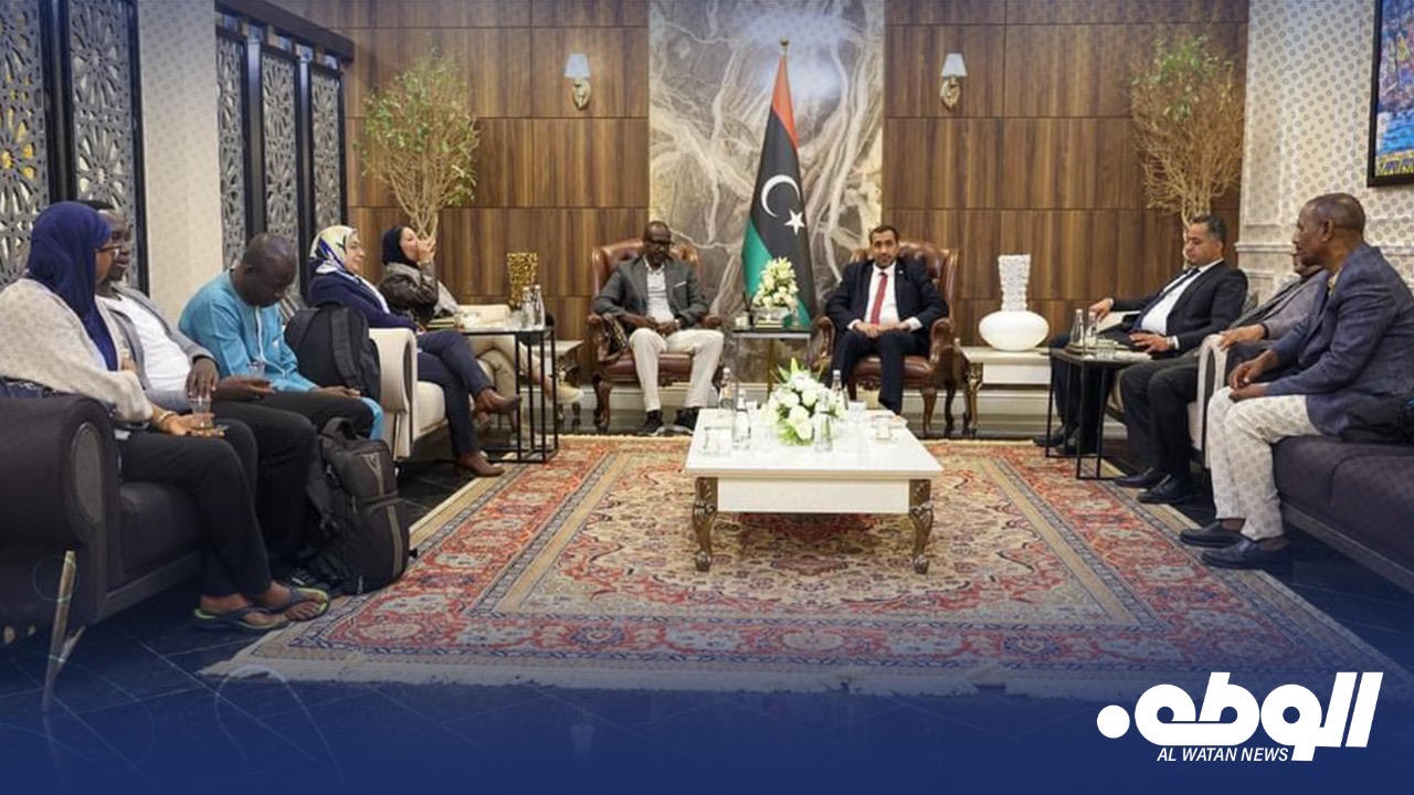 واستقبال الوفد مدير إدارة المؤسسات الشبابية في الحكومة المنتهية صالح الغول وعدد من مسؤولي وزارة الشباب، ومندوب عن الأمانة التنفيذية لدول تجمع الساحل والصحراء.
