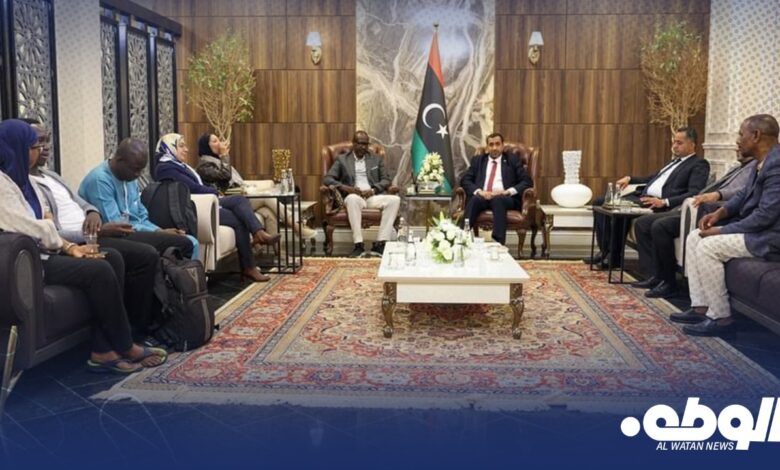 واستقبال الوفد مدير إدارة المؤسسات الشبابية في الحكومة المنتهية صالح الغول وعدد من مسؤولي وزارة الشباب، ومندوب عن الأمانة التنفيذية لدول تجمع الساحل والصحراء.
