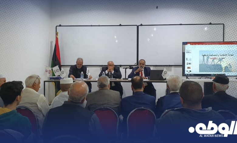 نظمت الجمعية الليبية للعلوم السياسية أمس السبت في بنغازي، حوارية حول المصالحة الوطنية ومدى الاحتياج الليبي لدعم تحقيقها بما يكفل استقرار الدولة، وتوزعت الجلسة على محورين، الأول العدالة الانتقالية والمصالحة الوطنية، والثاني تهافت مشاريع المصالحة في ليبيا، وذلك بهدف الوصول إلى أسس بناء النموذج الذي يكفل حقوق المواطنين وجبر الضرر بأنواعه.