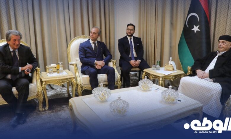 كما تطرق اللقاء إلى العلاقات الثنائية بين البلدين الصديقين على كافة الأصعدة ووجه رئيس مجلس النواب الدعوة للشركات الإيطالية للعودة إلى العمل في ليبيا للمساهمة في مشاريع الإعمار والتنمية مؤكداً على تنفيذ مشروع الطريق “أمساعد – رأس اجدير” وفقًا للاتفاق المسبق والمخطط له.