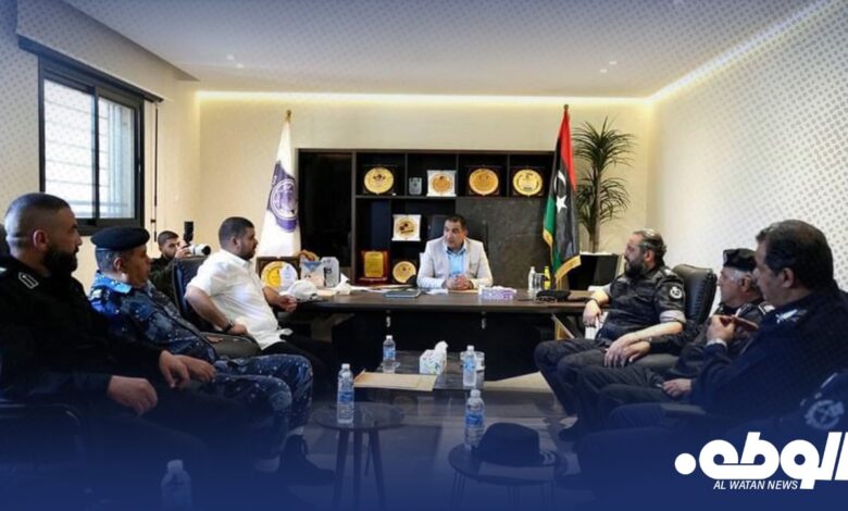 عقد وزير الداخلية، اللواء عصام أبوزريبة، رفقة وكيل الوزارة، فرج اقعيم، اجتماعاً أمنياً موسعاً مع رؤساء جهاز البحث الجنائي، ومكافحة المخدرات والمؤثرات العقلية، ومدراء الإدارة العامة للتفتيش والمتابعة، والإدارة العامة للدعم المركزي، والإدارة العامة لأمن المنافذ، ومعاون الشؤون الإدارية بالمباحث الجنائية.