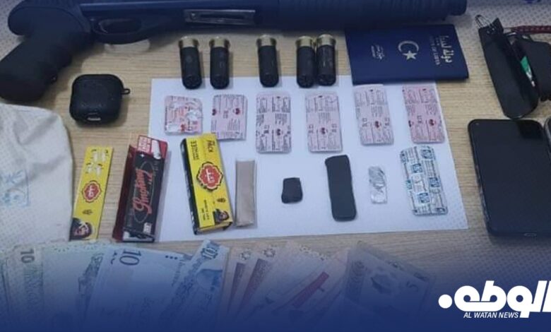 القبض على مروج مخدرات وبحوزته كمية من الحبوب المهلوسة وقطع من مادة الحشيش في بنغازي