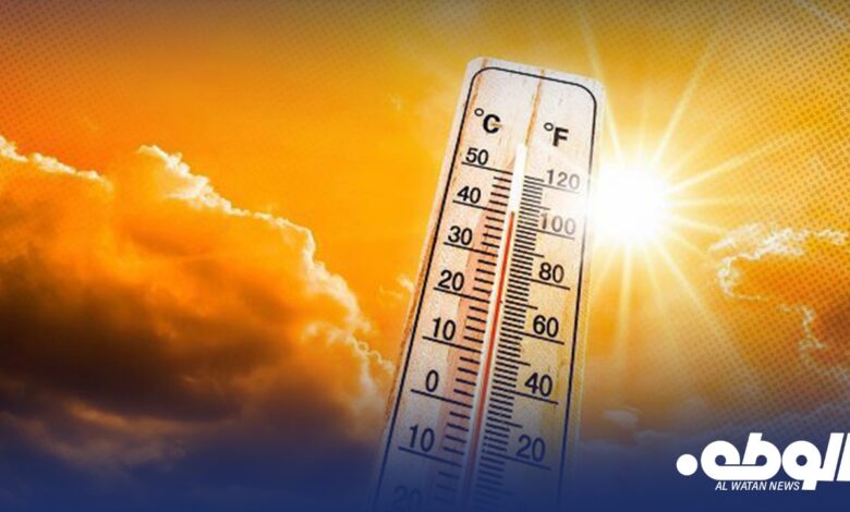 توقع المركز الوطني للأرصاد الجوية بقاء الطقس ساخن على أغلب مناطق البلاد خاصة على الخليج ومناطق شرق ليبيا بسبب تأثير الكثلة الهوائية الساخنة حيث تتراوح درجات الحرارة مابين (38-45) م ، مع تكاثر للسحب من حين لآخر على أغلب مناطق الشمال والوسط واحتمال بسيط لسقوط أمطار متفرقة اليوم على بني وليد القريات أبو نجيم) قد تتخللها سحب رعدية أحياناً.