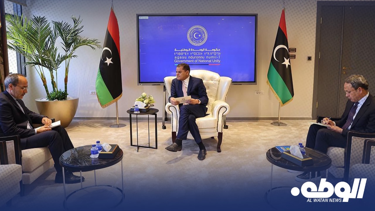 بحث رئيس الحكومة المنتهية عبدالحميد الدبيبة، مع سفير إيران لدى ليبيا عين الله سوري، اليوم الخميس، أوجه التعاون بين البلدين.