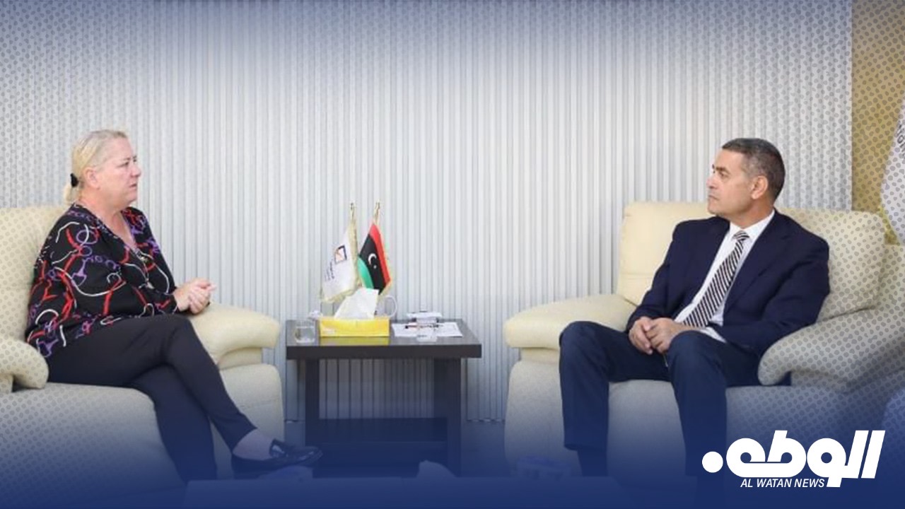 استقبل رئيس مجلس المفوضية الوطنية العليا للانتخابات د.عماد السايح، اليوم الأربعاء سفيرة دولة كندا لدى ليبيا إيزابيل سافارد والوفد المرافق لها، بحضور عضو مجلس المفوضية رباب حلب، وذلك بديوان مجلس المفوضية بطرابلس.