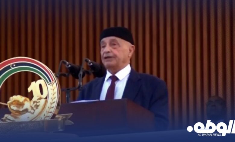 وشدد صالح على أن رجال القوات المسلحة الليبية أنقذوا ليبيا من الفوضى والإرهاب، مشيراً إلى أن الرجال في القوات المسلحة قدموا أرواحهم لحماية الوطن.