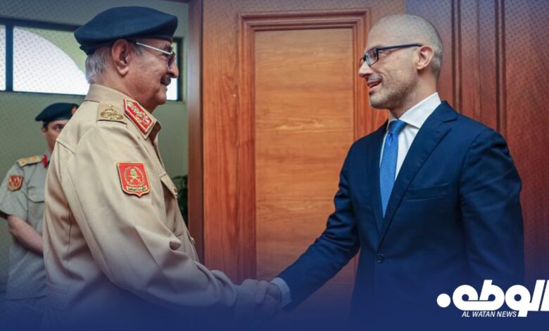 استقبل القائد العام للقوات المُسلحة المُشير خليفة حفتر، في مكتبه بمقرّ القيادة العامة، سفير الاتحاد الأوروبي لدى ليبيا نيكولا أورلاندو، والوفد المُرافق له، حيث تم بحث آخر التطورات والمُستجدات المحلية والإقليمية.