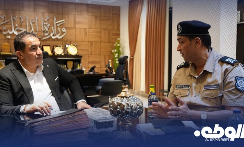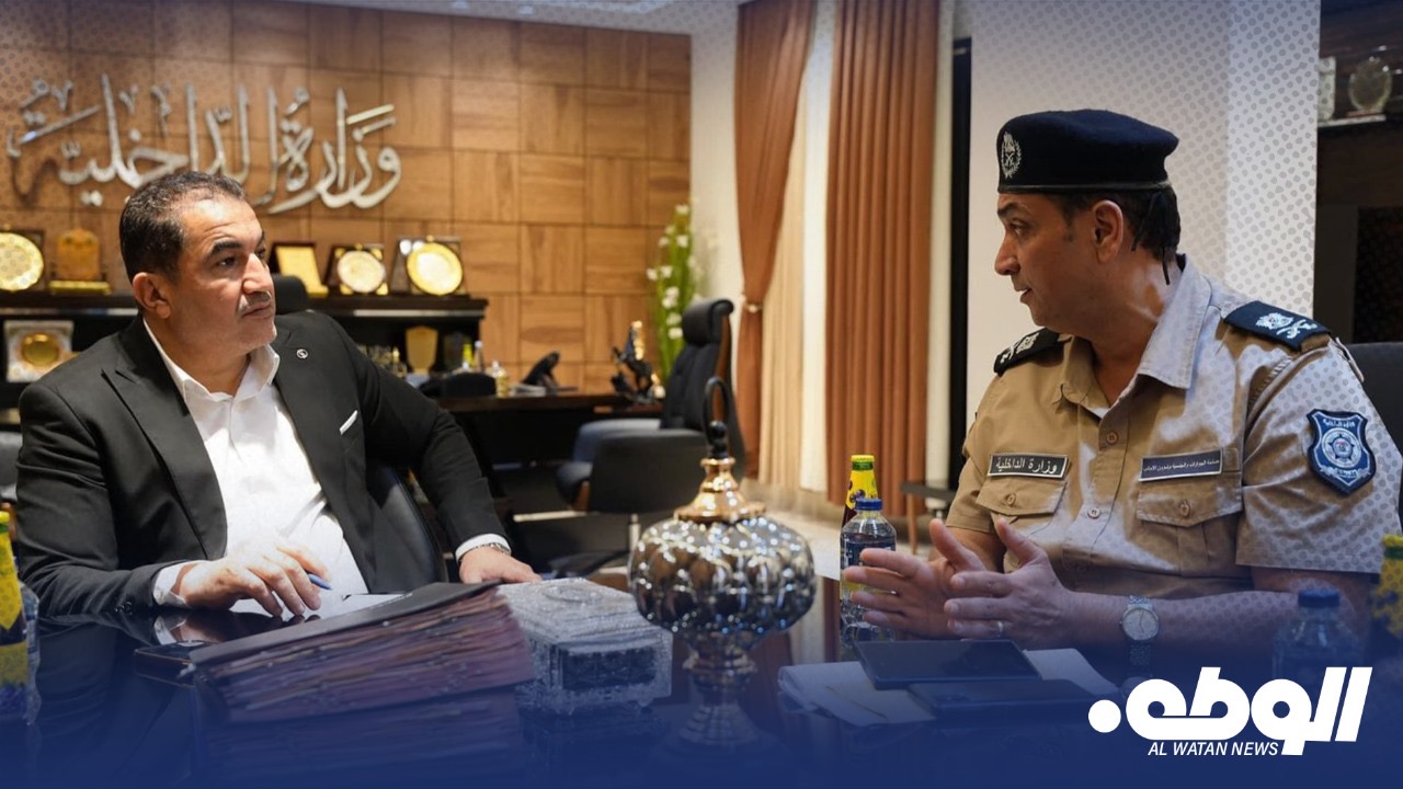 اجتمع وزير الداخلية، اللواء عصام أبوزريبة، مع رئيس مصلحة الجوازات والجنسية وشؤون الأجانب، لواء “فيصل محجوب اليوم الثلاثاء في مدينة بنغازي .