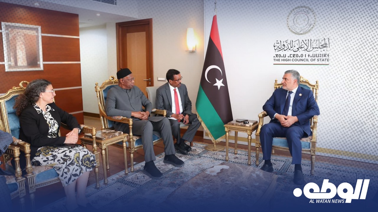 اجتمع رئيس المجلس الأعلى للدولة محمد تكالة رفقة أعضاء المكتب الرئاسي، المبعوث الأممي السابق عبد الله باتيلي ونائبته للشؤون السياسية ستيفاني خوري بمقر المجلس.