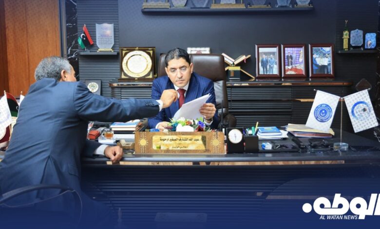 عقد وزير العمل والتأهيل عبدالله الشارف أرحومة اجتماعاً بمكتبه في ديوان الوزارة بمدينة سرت، وذلك بناءً على توجيهات القائد العام للقوات المسلحة المشير خليفة حفتر وتعليمات رئيس مجلس الوزراء أسامة حماد بشأن تنفيذ الحلول المناسبة والجذرية للعاملين بالشركات المتعثرة والمنسحبة