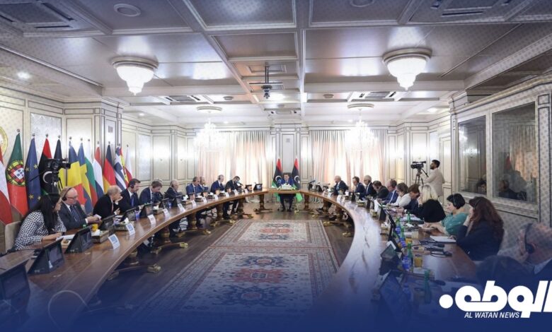كما أشاد السفراء بجهود الحكومة في ملف الهجرة غير النظامية، مشيرين إلى ضرورة المشاركة الفاعلة من الدول الأوروبية في المنتدى المزمع عقده في طرابلس للحد من هذه الظاهرة.